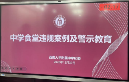 为深入贯彻落实全面从严治党要求,进一步增强后勤队伍廉洁自律意识,筑牢拒腐防变思想防线,2025年12月30日晚,西南大学附属中学教育集团在勤朴楼204会议室组织召开后勤工作廉洁警示教育会。学校全体校领导、各校区执行校长、分管后勤副校长及后勤负责人参加会议。会议由张蔚副校长主持。