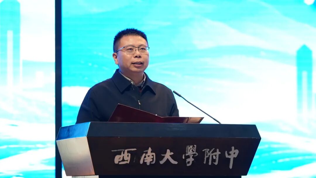 西南大学附属中学校党委书记欧健和校长、党委副书记张勇为获奖学生颁奖。
