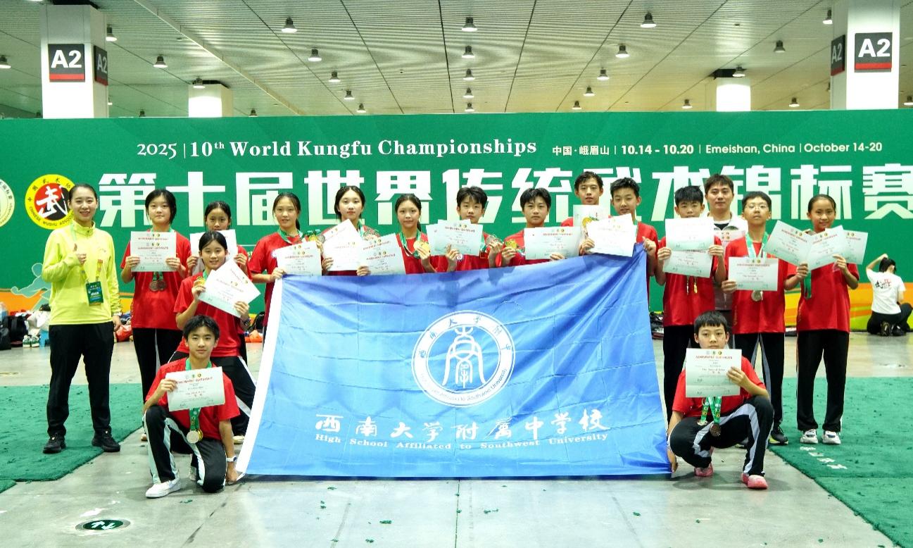 近日,在刚刚落幕的第十届世界传统武术锦标赛上,我校武术队以16金、15银、5铜的辉煌战绩,书写了一段武林传奇。