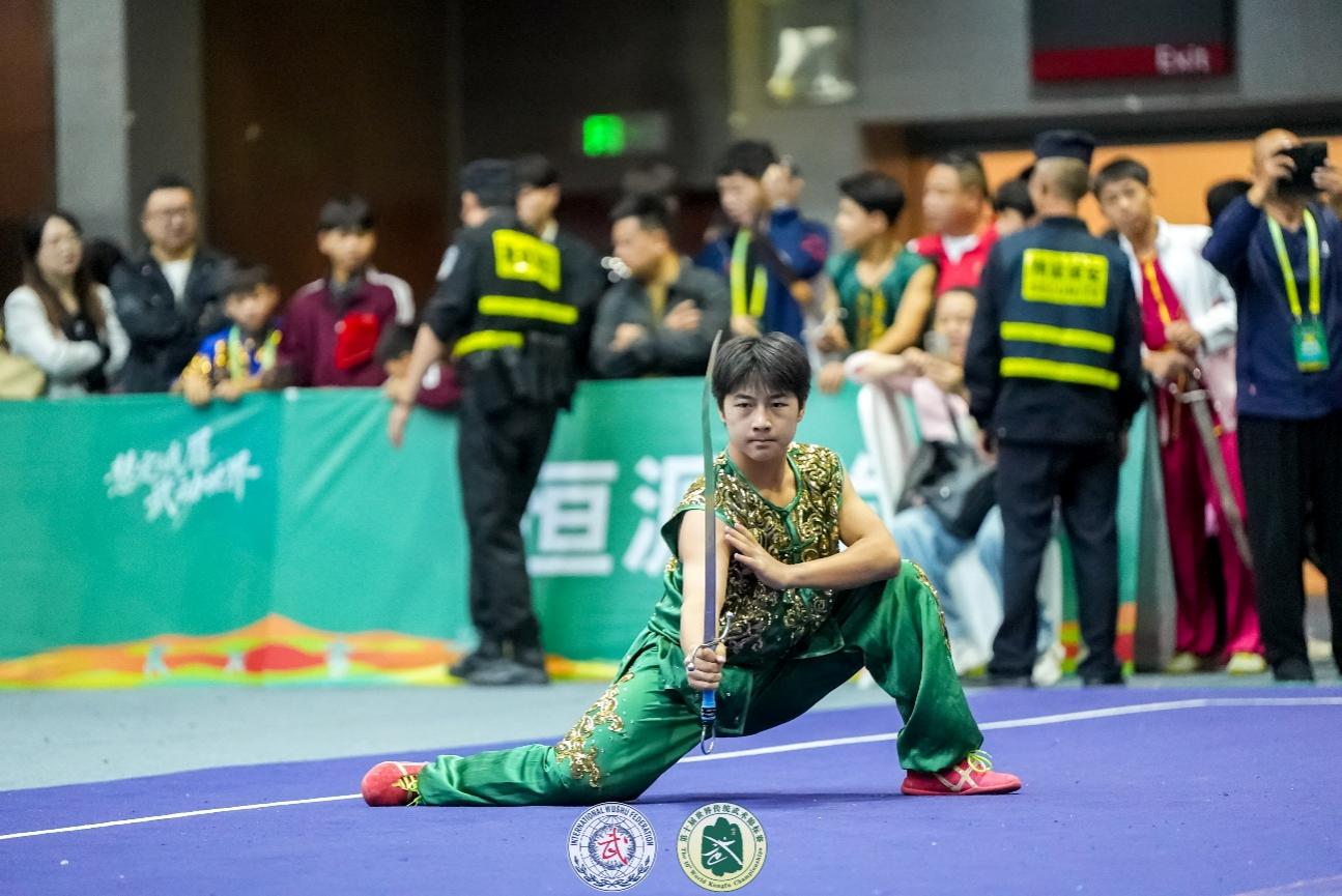 我校武术队凭借顽强的意志和精湛的技艺,与这些高手刀光剑影中见真章,起承转合间展风华,最终以一场场精彩的表现征服裁判,也赢得了观众的喝彩。