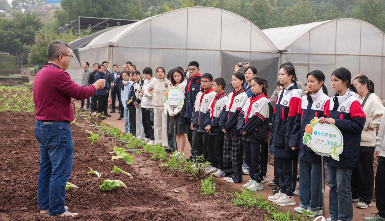 西南大学附属中学团委组织校学生会代表、共青团员及少先队员代表,与大学师生、小学师生共同参与劳动,通过亲耕亲种、文化传承、成果转化等沉浸式实践,深化劳动认知,推动“大中小一体化”协同育人实效。