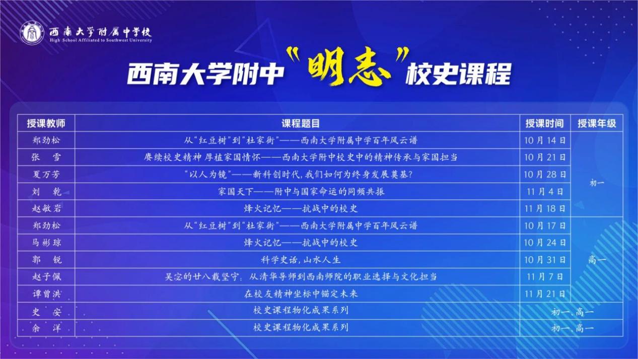 以历史为经,以学科为纬,西南大学附中“明志”校史课程精心编织出一幅立体而恢弘的育人画卷。引领学生与校史深度对话: