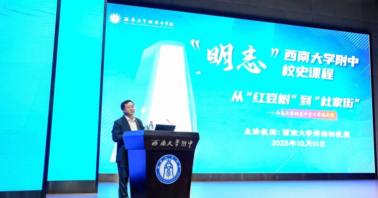 10月14日与17日,西南大学附中“明志”校史课程在初一、高一年级正式启幕。课程顾问——西南大学档案馆、校史馆、博物馆副馆长郑劲松老师以《从“红豆树”到“杜家街”——西南大学附属中学百年风云谱》为题,带领同学们穿越百余年时光,走进附中波澜壮阔的精神谱系。