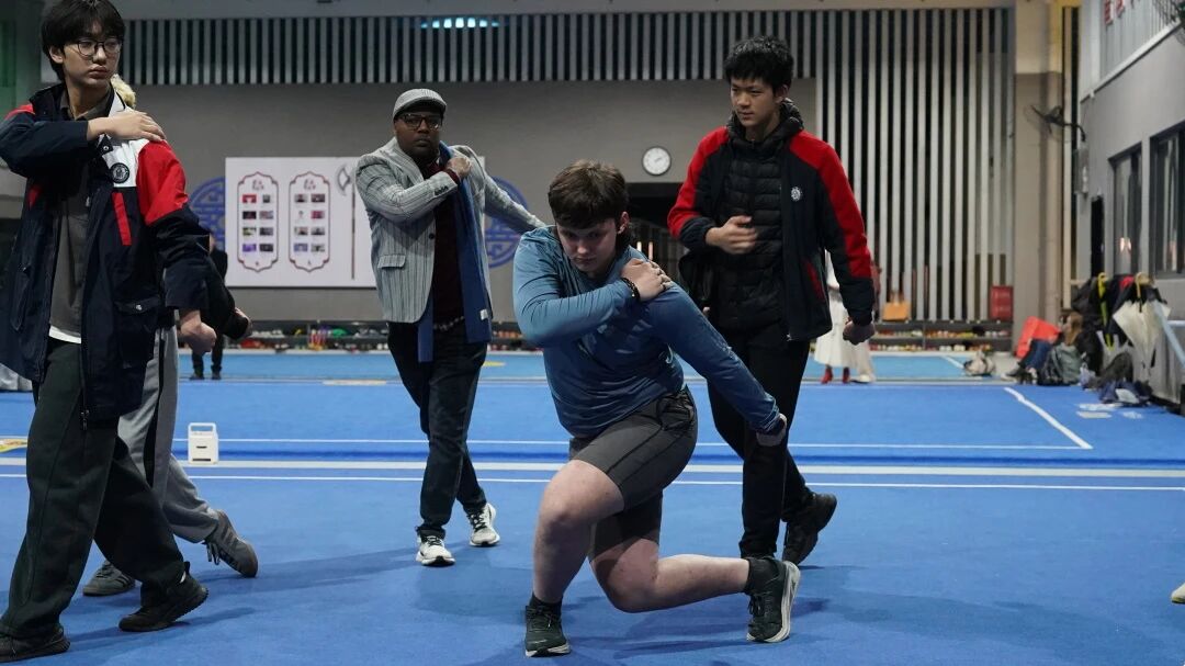 美国学生们认真模仿、积极互动,在一招一式中感受中华武术 “尚武崇德” 的精神内核。学伴们全程陪同,耐心讲解武术背后的东方智慧 —— 刚健与谦和并存的文化底蕴,让古老的武魂在互动中传递,也让中美青少年在汗水与笑声中,拉近距离、增进了解。