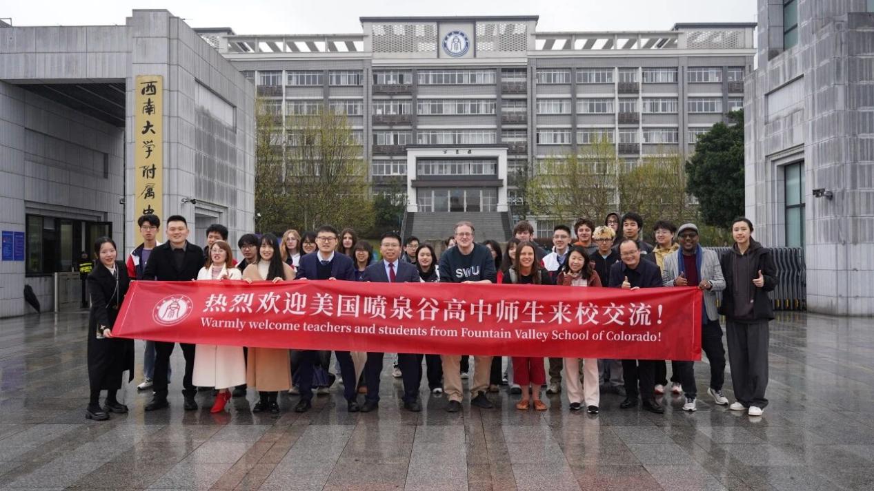 “Welcome to High School Affiliated to SWU!” 西南大学附中张勇校长,梁学友副校长带领附中师生用热情的笑容迎接远道而来的朋友。简短而隆重的欢迎仪式后,双方合影留念,定格下这份珍贵的跨国友谊。