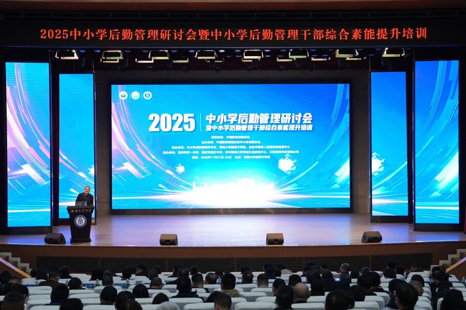 11月22日,2025中小学后勤管理研讨会暨中小学后勤管理干部综合素能提升培训我校召开。来自全国各地的中小学领导、教育后勤领域专家、学者及教师代表等近300人齐聚一堂,共话智慧后勤发展未来。