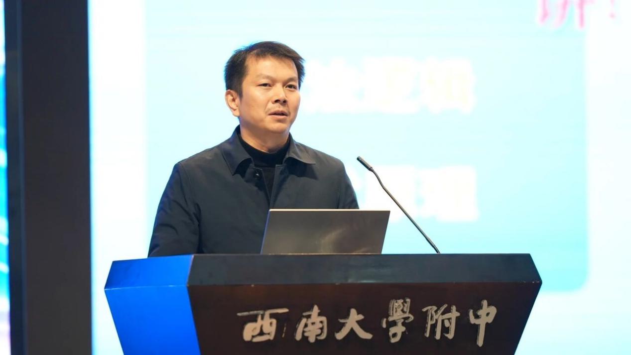 西南大学附中党委委员、副校长张蔚作了题为《数智驱动服务育人——构建智慧后勤新生态》的分享。他从学校实际出发,详细介绍了西南大学附中在数智化浪潮下,以“服务育人”为核心,构建智慧后勤新生态的具体举措与成效,展现了学校在后勤管理创新中的积极作为与责任担当,赢得了与会嘉宾的广泛认可。