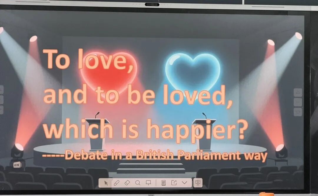 高一年级的同学们在Gary老师的组织下,围绕“To love, and to be loved — which is happier?”展开了一场全英文英国议会制辩论。选手们从心理学自我价值 / 文学中的自由精神 / 社会关系中的主动与安全感……多重维度切入,论证不仅语言纯熟,更是结构成熟、立场鲜明。有同学引用Fromm《爱的艺术》,也有观点延伸至AI时代的情感伦理,将论题瞬间拉至21世纪现实议题现场。