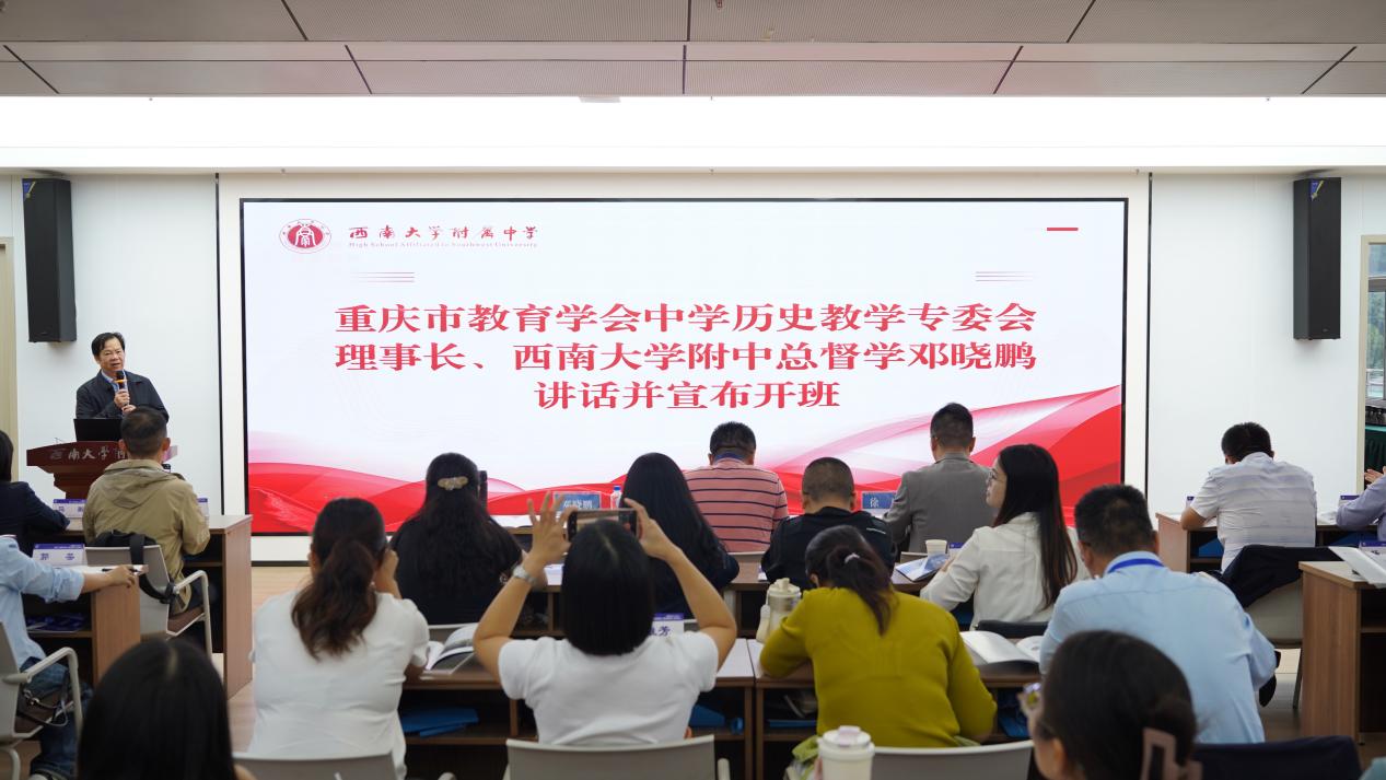重庆市教育学会中学历史教学专委会理事长、西南大学附中总督学邓晓鹏宣布项目正式启动。徐川副校长在主持中对培训纪律与学习建议作强调,希望学员们筑牢安全底线、提升学习实效、珍惜相聚时光,在教育这场“向美而行的遇见”中启迪智慧、收获友谊、积蓄力量。