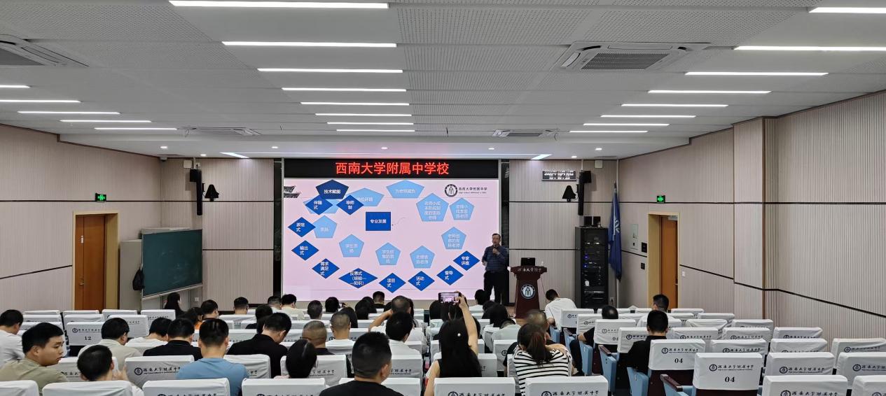 活动伊始,西南大学附中副校长黄仕友对梁平区教育同仁的到来表示热烈欢迎,并作题为“教育强国背景下教师发展的探索”的专题报告。黄校长阐述了表扬艺术的创新与应用,并讲述了“创意表扬”在激发师生内在动力、营造积极教育生态中的独特价值。在教师专业发展层面,黄校长介绍了通过构建多元化、立体化的培训渠道,助力教师持续更新教育理念、提升教学教研能力,实现阶梯式成长的做法。最后,黄校长还分享人工智能为教师科学减负、提质增效的方法技巧,让教师能更专注于教育教学的核心环节,激发创新活力。