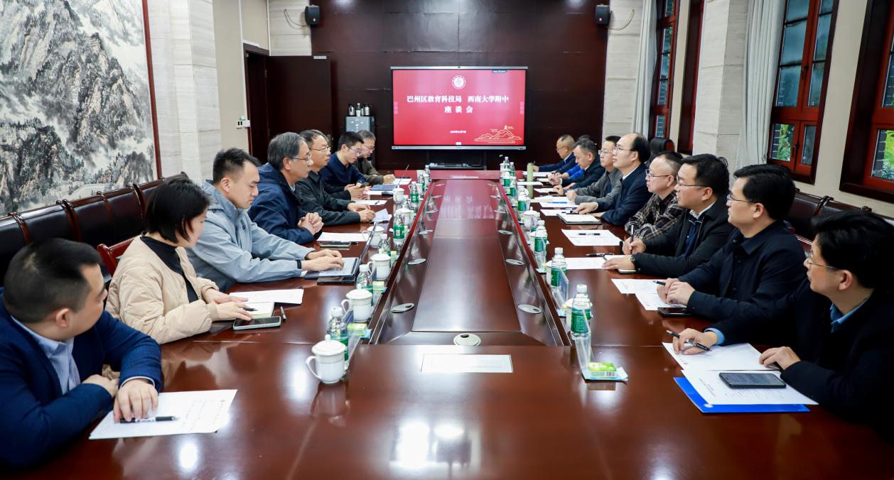 11月7日,巴中市巴州区委教育工委书记、区教育科技局党组成员、局长刘映德一行来校访问交流,双方围绕拔尖创新人才培养、初高中贯通式培养等议题进行座谈交流。西南大学教授、博士生导师蒋登科,学校党委书记欧健、副校长刘建勇以及相关职能部门有关负责人参加座谈交流。