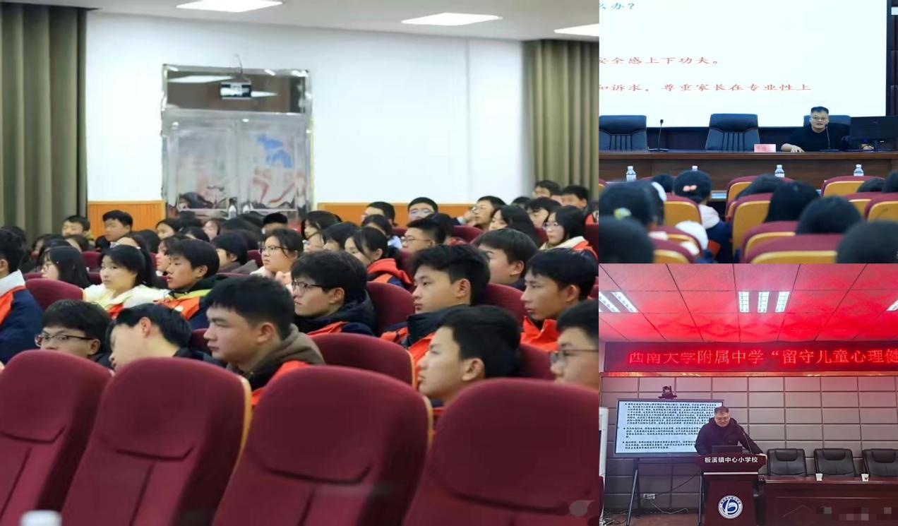 针对当前中小学生心理健康教育的迫切需求,西南大学附中秦绪宝老师为板溪小学教师带去留守儿童心理关爱专题讲座,并为酉阳一中、酉阳四中的高三年级学生分别开展考前心理疏导讲座,引导学生科学应对压力,体现“三全育人”导向,筑牢学生健康成长保障。