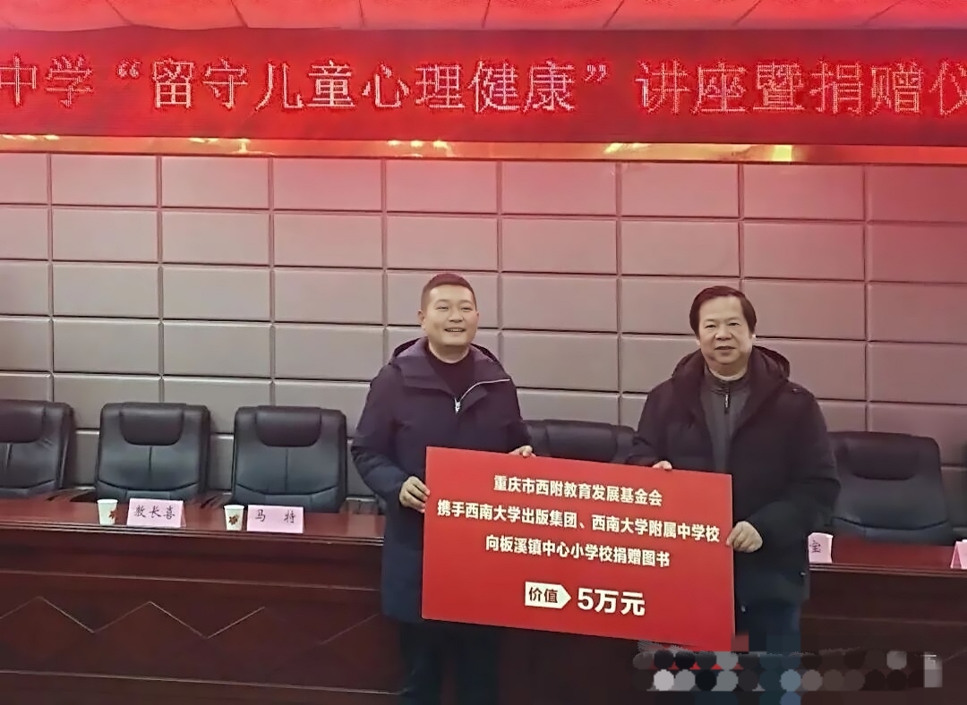 在板溪镇中心小学,西南大学附中管理团队、专家教师与学校师生一起举行了图书捐赠仪式,并为乡村教师开展专题培训。通过“物资+智力”双线帮扶,助力提升乡村学校师资能力与教育质量,是推动城乡教育均衡、服务乡村振兴的切实举措。