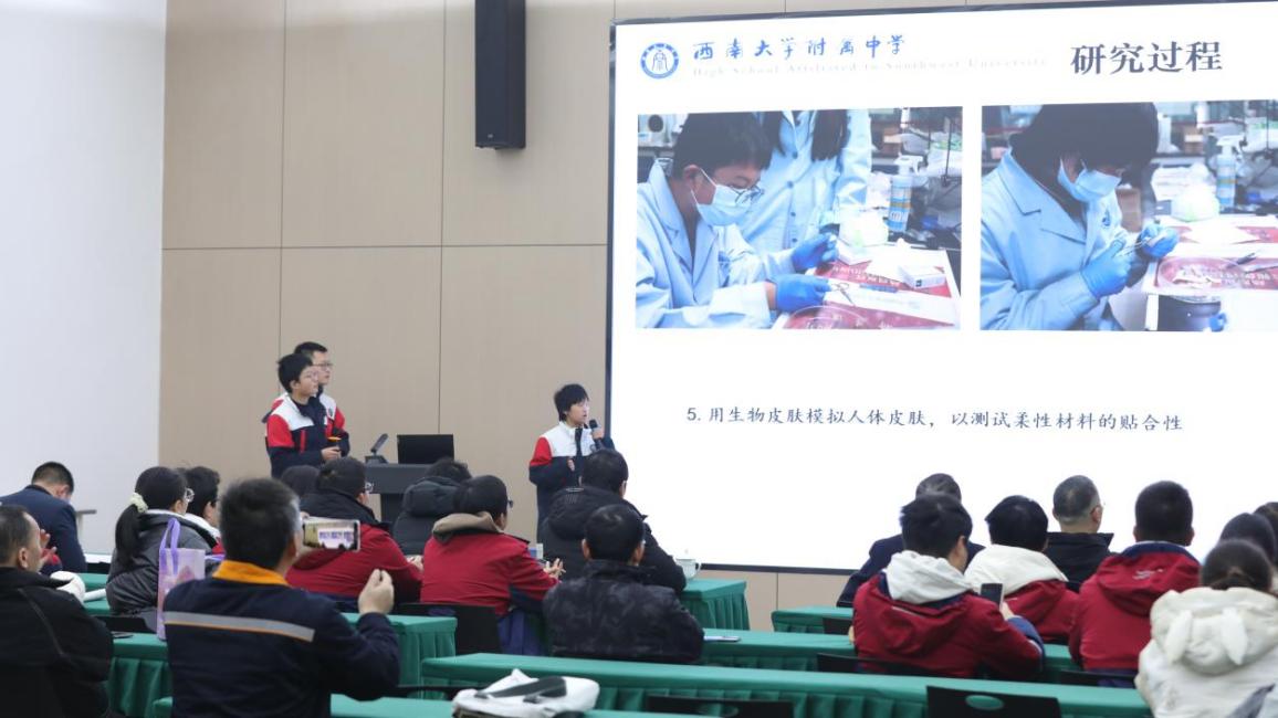 “超导电蚕丝的柔性适配性如何进一步优化?”“人工智能分析血迹的准确率有哪些数据支撑?”……1月11日,西南大学附属中学校本部积健楼101会场内,思维的火花激烈碰撞,重庆市青少年创新人才培养雏鹰计划第十四届论坛(西大附中分论坛)在此圆满举行。这场汇聚全市多所中学科创少年的盛会,以“创新实践”为核心,展现了新时代青少年的科研热情与探索精神。