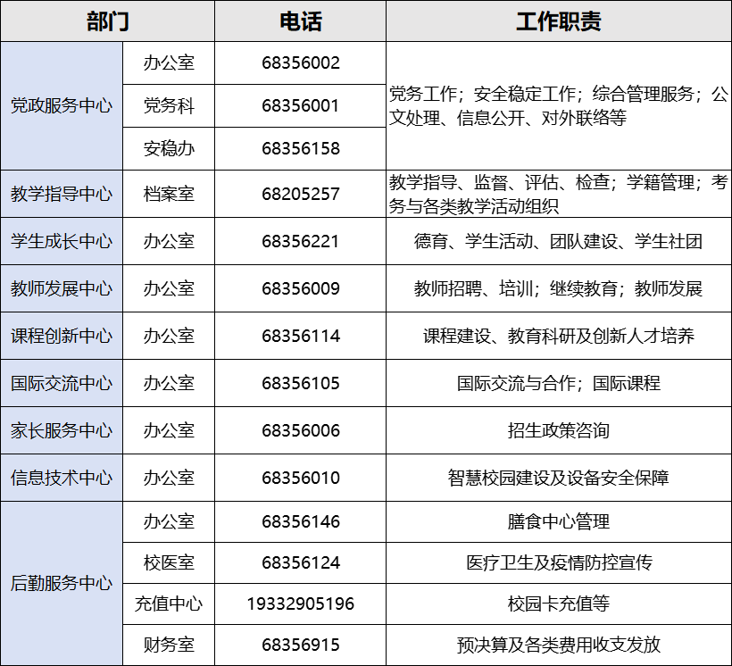 西南大学附中职能部门一览表