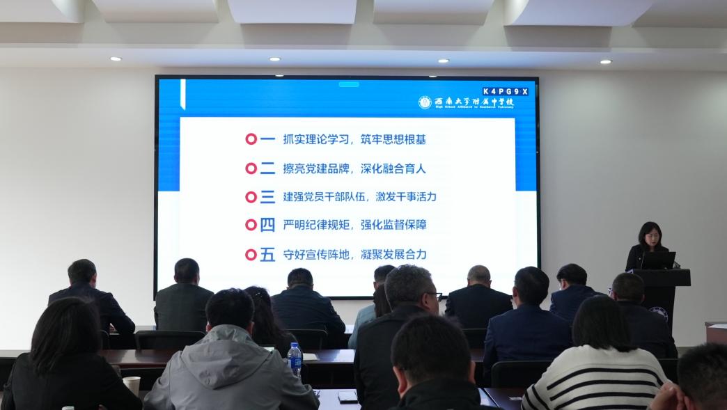 会议强调,各校区、各支部要迅速传达学习,统一思想行动;对标对表找差距,重点破解党建与业务“两张皮”、各校区发展不平衡、支部作用发挥不充分等问题;压实责任链条,强化“抓党建就是抓发展”意识,以更强信念、更实作风、更新举措,奋力开创附中党建工作新局面,以高质量党建护航学校“十五五”高质量发展行稳致远。