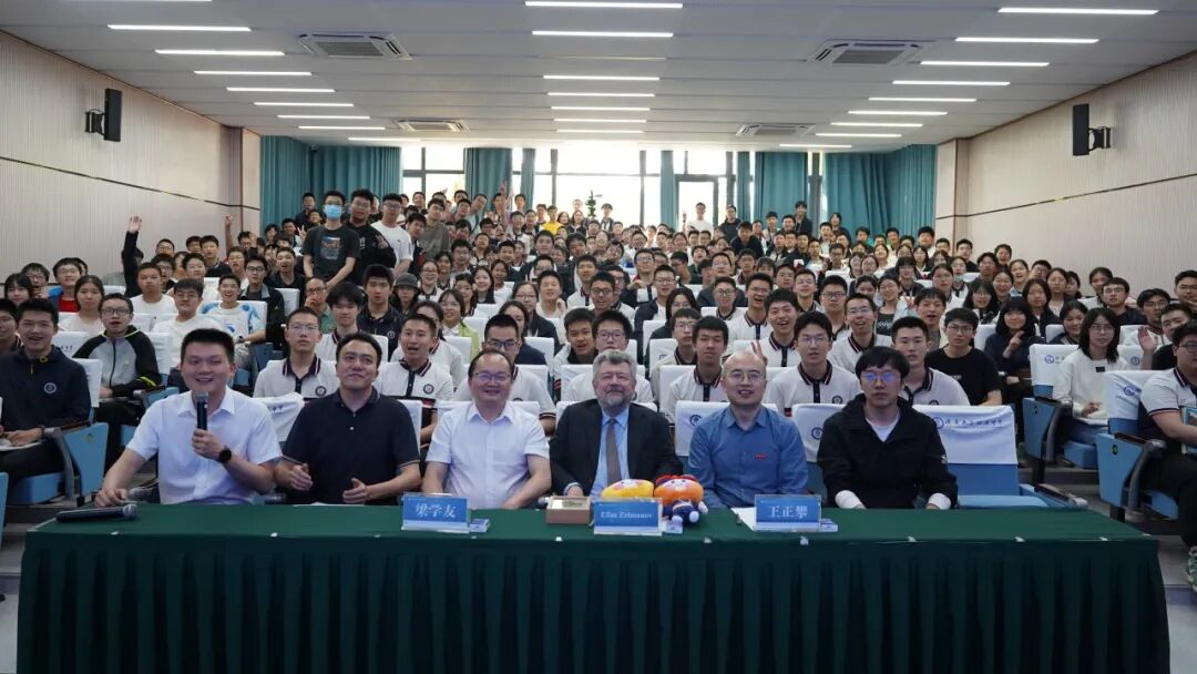 同学们争相提问。“数学研究那么抽象,您是如何保持热情的?”埃菲·杰曼诺夫院士笑着回答:“数学本身就是美的。当你发现一个看似复杂的问题可以用简洁的公式表达时,那种快乐无可替代。”有同学担心人工智能会取代数学,埃菲·杰曼诺夫院士坚定地说:“AI建立在数学之上,但数学的创造性和洞察力,永远是人类独有的优势。”此外,他还耐心解答了关于学习方法、科研初心等问题,用幽默风趣的语言分享治学经验,赢得阵阵掌声。