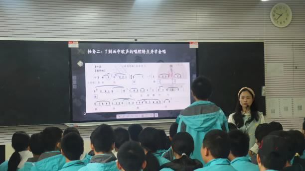 围绕“AI赋能,融合教学”,音乐教研室开展专题讲座、课例展示与研讨交流相结合的教研活动,探索信息技术与音乐课堂的深度融合路径。专题讲座中,教师结合课堂器乐合奏教学实际,从学情分析出发,围绕曲目的趣味性、层次性与教育性,分享合奏曲目选择与改编思路,并以《沂蒙山小调》为例,阐释如何在保留音乐精髓的同时降低演奏门槛,让学生在合作中获得参与感与成就感。