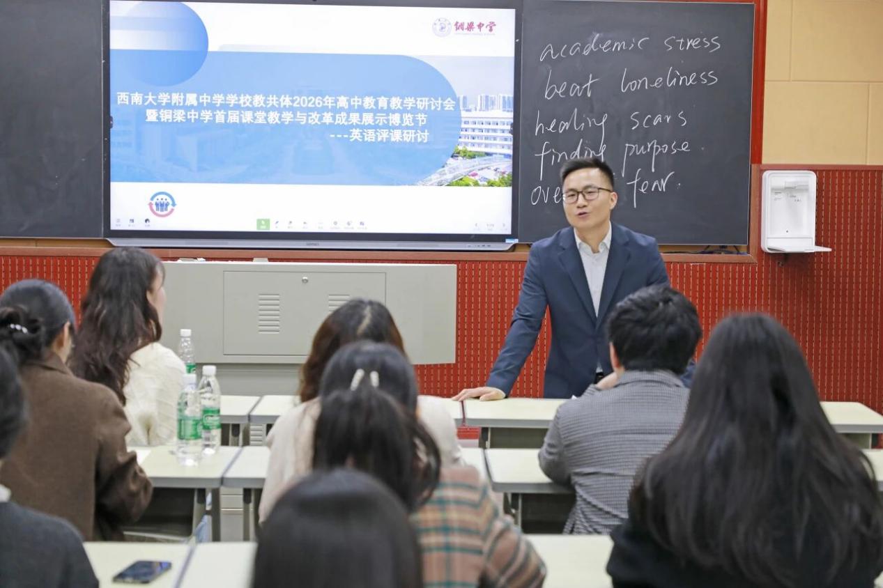 3月27日,由西南大学附中牵头、铜梁中学主办的西南大学附中教共体2026年高中教育教学研讨会暨铜梁中学首届“课博节”在铜梁中学凤山校区圆满落幕。来自市内外15所西附教共体成员校的近200名领导与老师齐聚一堂,以课为媒、以研促教,共同书写跨区域教育协同发展的新篇章。